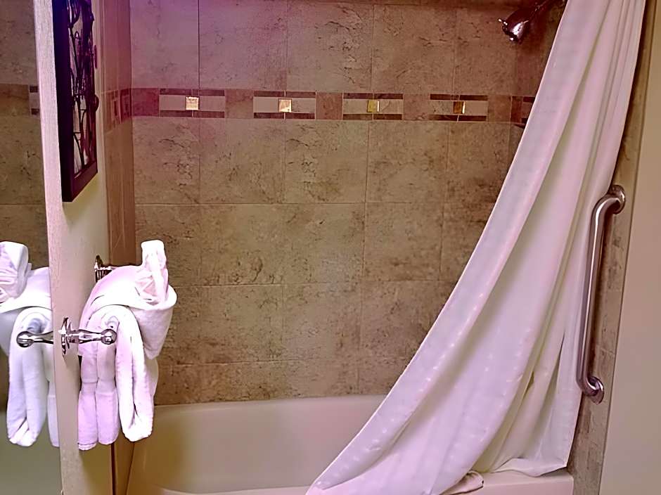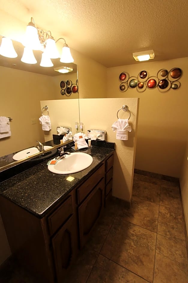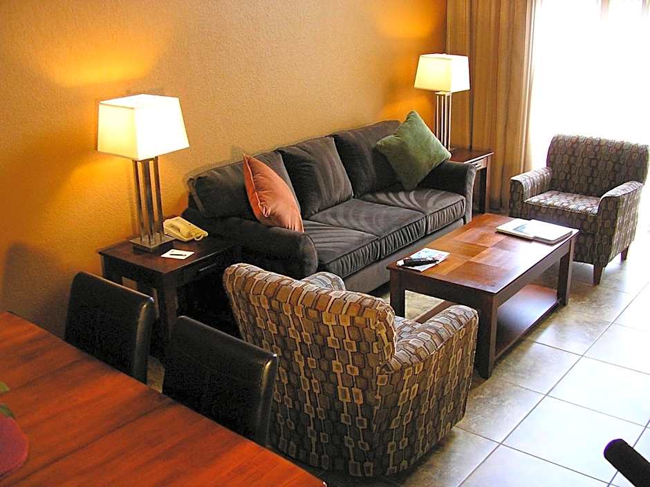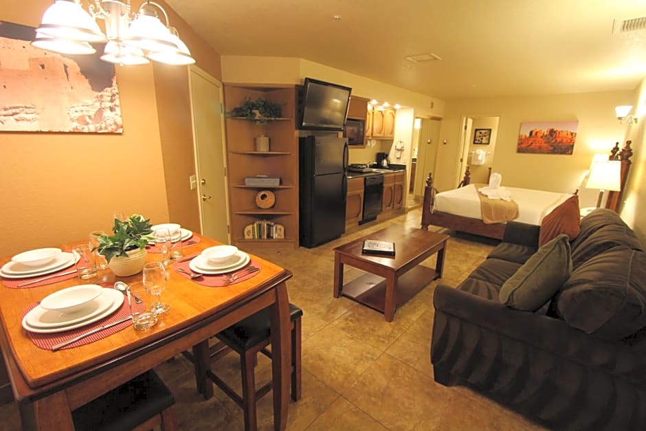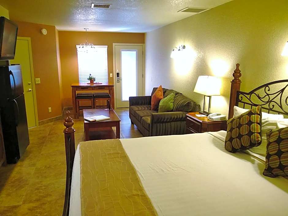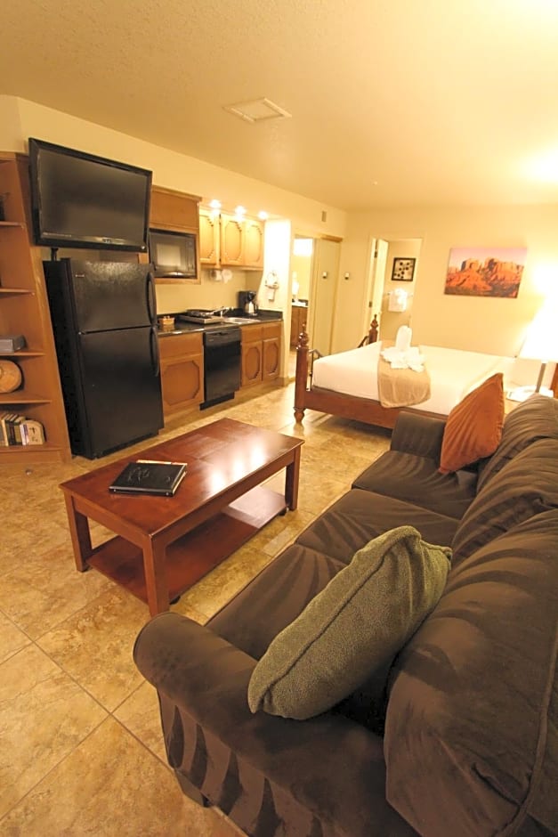 A kitchenette is featured in this spacious suite. A separate seating area with a sofa bed and cable TV is also included.